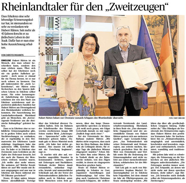 Dass Erkelenz eine sehr lebendige Erinnerungskultur hat, ist niemandem so sehr zu verdanken wie Hubert Rütten. Seit mehr als 40 Jahren forscht er zu jüdischem Leben in der Stadt. Dafür hat er nun eine hohe Auszeichnung erhalten.