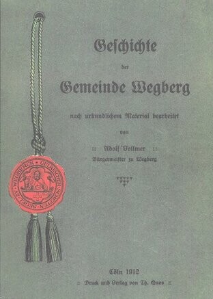 Die Original-Ausgabe der "Geschichte der Gemeinde Wegberg" von Adolf Vollmer aus dem Jahr 1912 ist äußerst selten und nur antiquarisch zu erwerben.
