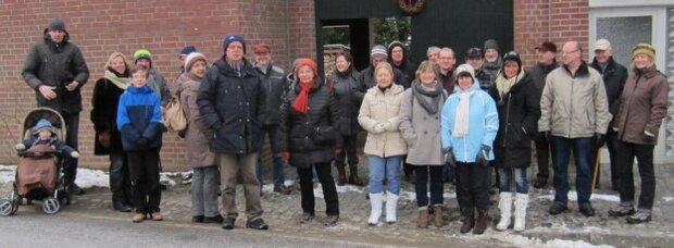 Die vielen denkmalgeschützten Häuser im winterlichen Kleid sorgten für eine interessante Kulisse. An der Pfarrkirche St. Mariä Himmelfahrt, die mit ihrer 200-jährigen Geschichte der Mittelpunkt des Angerdorfes ist, erfuhren die Teilnehmer, dass dieser Ortsteil früher ein Wallfahrtsort war. In Glanzzeiten hatte der Ort viele Gaststätten rund um den Anger. Der Friedhof in Rickelrath ist eng verbunden mit dem Grab von Anton Heinen, der Pfarrer in der Gemeinde war von 1932 bis 1934. Der schneidende Wind trieb die Gruppe nach knapp fünf Stunden schnell in die warme Stube der alten Rickelrather Schule.