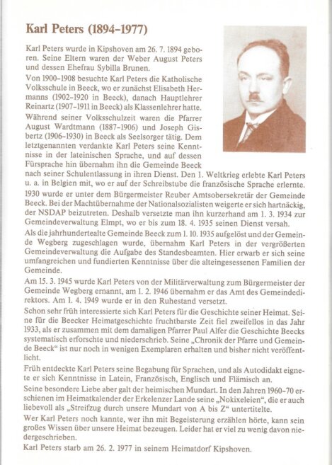 Zum 10jähigen Todestag des Heimatforschers Karl Peters stellt der Heimatverein Beeck dessen Arbeit vor.