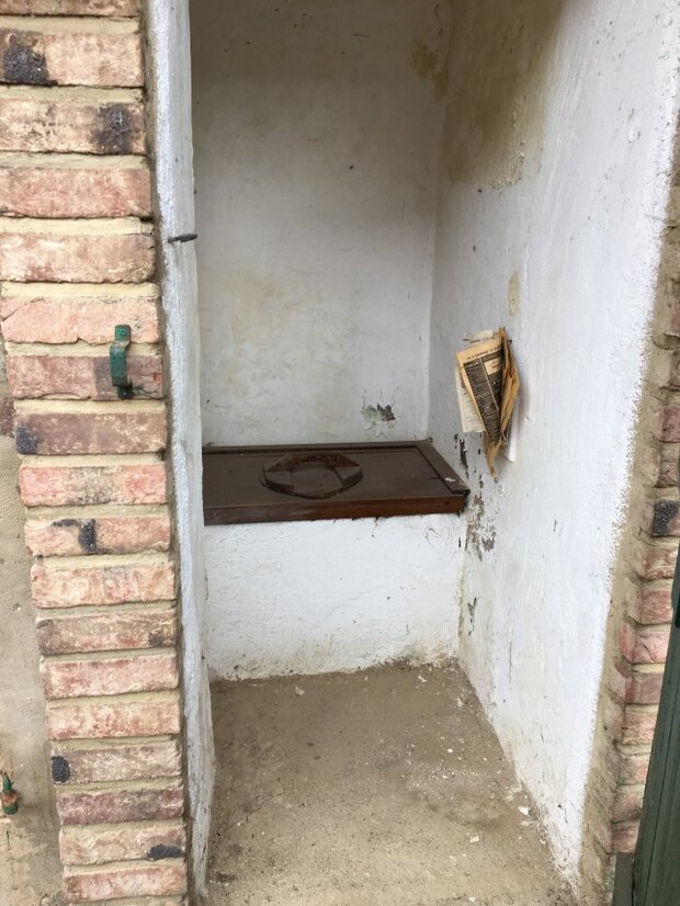Bild 3: Das „stille Örtchen“ mit Zeitungspapier, so, wie wir es von früher kennen (Foto: Maria Tannhäuser), aufgenommen im Innenhof des Korbmacher-Museums Hilfahrt