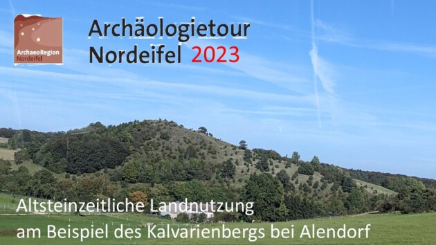 Programm: Am Fuß des Kalvarienberges berichten Archäologen welchen Einfluss unterschiedliche Landschaften auf das tägliche Leben in der Altsteinzeit hatten. Begleitete Führungen zum Gipfel geben die Möglichkeit, das zuvor Erfahrene am Panorama nachzuempfinden. Für Kinder: Jagen in der Altsteinzeit, Bogenschießen und Speerschleuder.