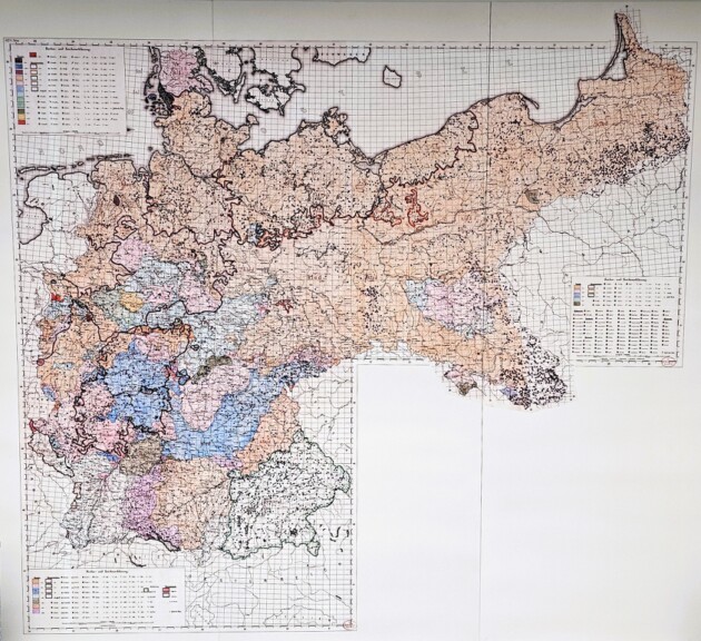 Lautkarte "Kleid" (#252) aus dem handgezeichneten Wenkeratlas (WA) als Wandbild im Forschungszentrum Deutscher Sprachatlas DSA in Marburg - Foto: Hermann-Josef Heinen, 2023