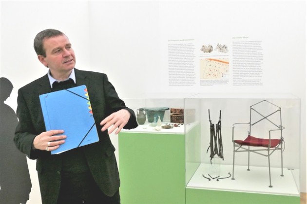 Exquisite Ausstattung des Grabes: ein eiserner Faltstuhl, der zusammengefaltet beigegeben war und als Nachbau