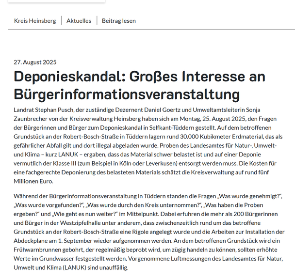 Info - 30.06.2025 - Update zum mutmaßlichen Umweltskandal - Kreis HeinsbergLandrat Stephan Pusch gibt nach der heutigen Taskforce-Sitzung ein Update zum mutmaßlichen Umweltskandal. Der Kreis Heinsberg ist nicht gewillt, länger auf eine geforderte Abdeckung des Geländes in Tüddern zu warten. Der Landrat erklärt die nächsten Schritte. #kreisheinsberg #stephanpusch #hsbestrong