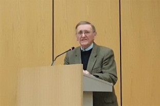 Georg Wimmers in seiner Laudatio: Er nehme für sich wahr, dass der Dialekt, das Platt, unheimlich viel Wärme und Heimat ist. Und an Bertrams gewandt: „Du sorgst dafür, dass unsere Mundart wirklich nicht ausstirbt und deshalb erhältst du diese ganz selten vergebene Auszeichnung. Du bist als Mundartpapst in die Geschichte eingegangen, hast gepredigt in unseren Mundartmessen, und wer dich gehört hat, hat gelacht und war froh. Du kämpfst dein Leben lang, das Platt uns zu erhalten. Platt ist Heimat, nicht nur für die Alten. Und wenn du eines Tags am „Hemmelspöözke“(Himmelspforte) stehst, dann sag dem Petrus still on leis: ̧Ech benn ne Bää’eker Jong, watwellst de maache, echben schon zemlech alt on donn jet laache. Wat ech te saare hann, dat kütt uut et Hatt, min Lieblingssproak es et Bää’eker Platt.“