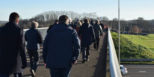 Zum 75. Mal jährte sich der Mahnmarsch in Erinnerung an die 14 Toten, die die Wehrmacht erschoss. Rund 300 Menschen zogen mit. Foto: Axel Küppers