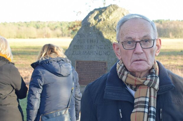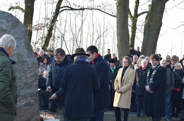 Kranzniederlegung am 1996 von Niederkrüchtener Bürgern errichteten Gedenkstein Lüsekamp. Dienstag, 21. Januar 2020 - Rheinische Post - Wegberg