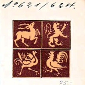Dort findet sich ein Musterblatt, dass die beiden Motive als einen gemeinsamen Entwurf zeigt. Dieses diente als Vorlage für die Produktion von Villeroy & Boch als Motiv No. 516 für den "St. Georg" und als Motiv No. 517 für das "Papstwappen".